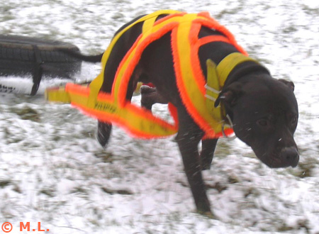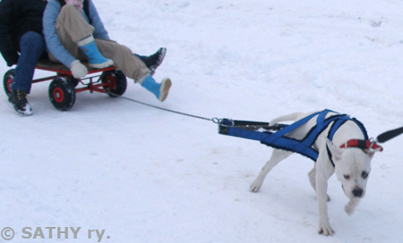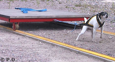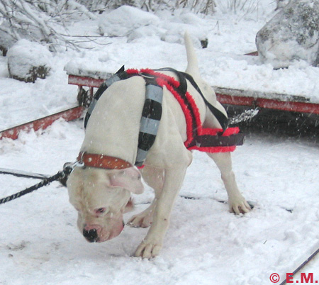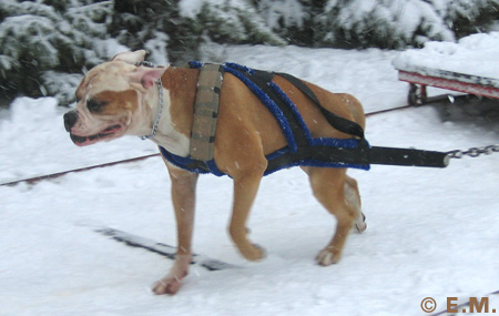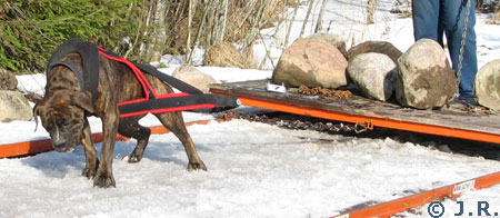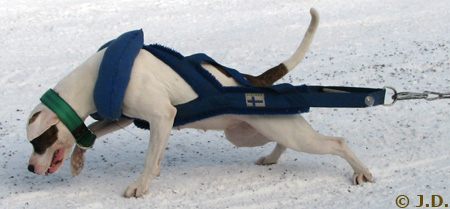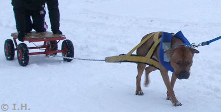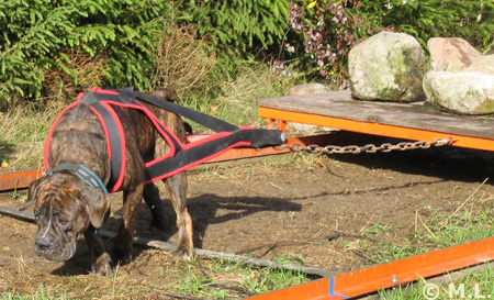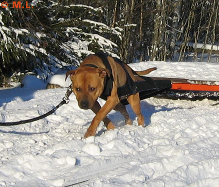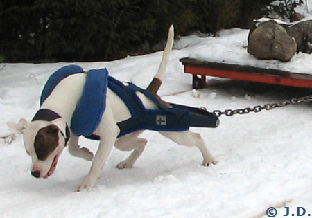 Amerikanpitbullterrieri Erkki treenaa taakanvetoa