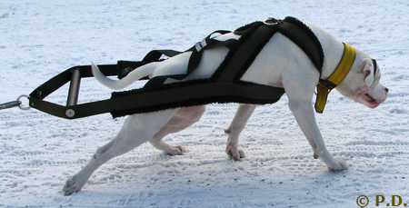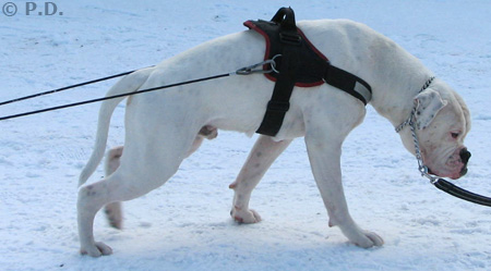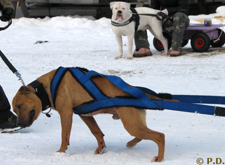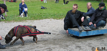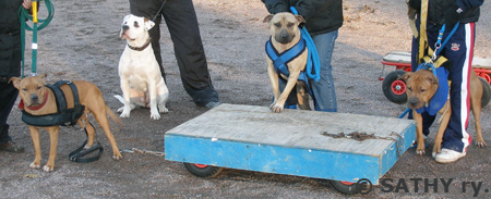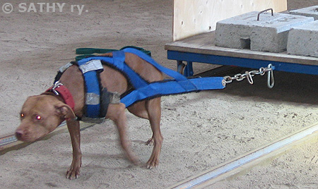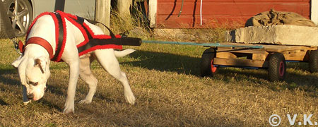 Amerikanpitbullterrieri Tarmo treenaa taakanvetoa