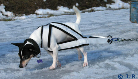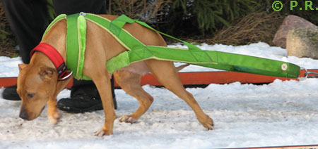 Amerikankääpiöterrieri Blackie treenaa taakanvetoa