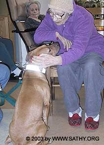 Most working dogs are just great with children, handicapped and elderly people. Most of the American Bulldogs, American Pit Bull Terriers, Toy Fox Terriers and Old Englishe Bulldogs that candidates to join the SATHY Therapy Dog Team are more than suitable for the job.